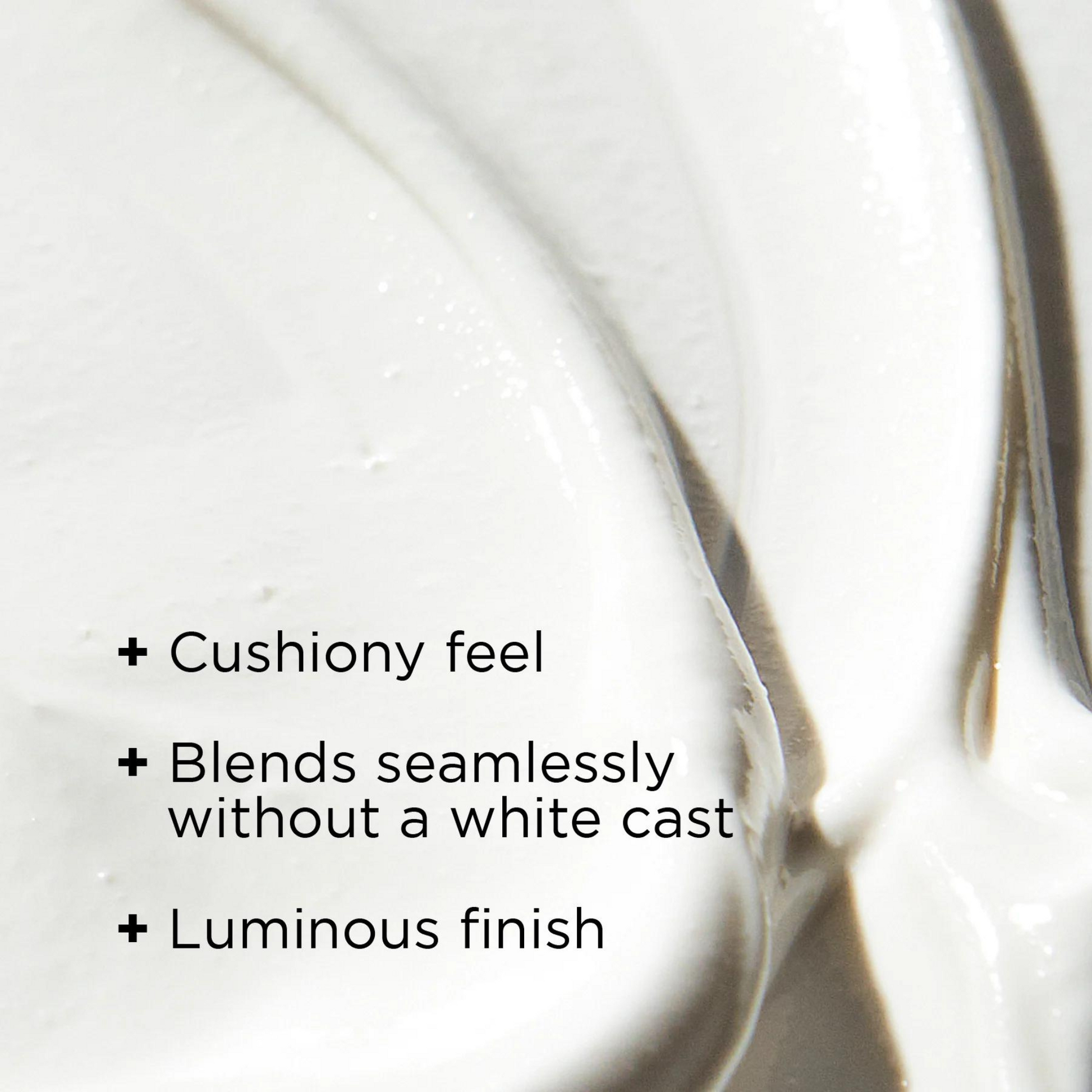 • Radiant hydration with a unique, cushiony feel that blends seamlessly on all skin tones without a white cast